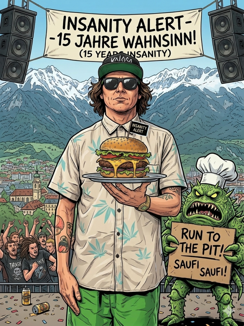 Fünfzehn Jahre Moshpits, fünfzehn Jahre geballte Energie und unzählige abgerissene Bühnen! Die Innsbrucker Thrash Metal Institution Insanity Alert feiert 2026 ihr großes Jubiläum. Grund genug, Frontmann Heavy Kevy abzufangen und ihm ein paar brennende Fragen zu stellen. Im folgenden Interview sprechen wir über die wilden Anfänge, den ständigen Bedarf an Bastelstunden für Bühnenrequisiten, kulinarische Fast Food Träume und warum ein bestimmtes Mittelchen auf keiner Tour mehr fehlen darf.